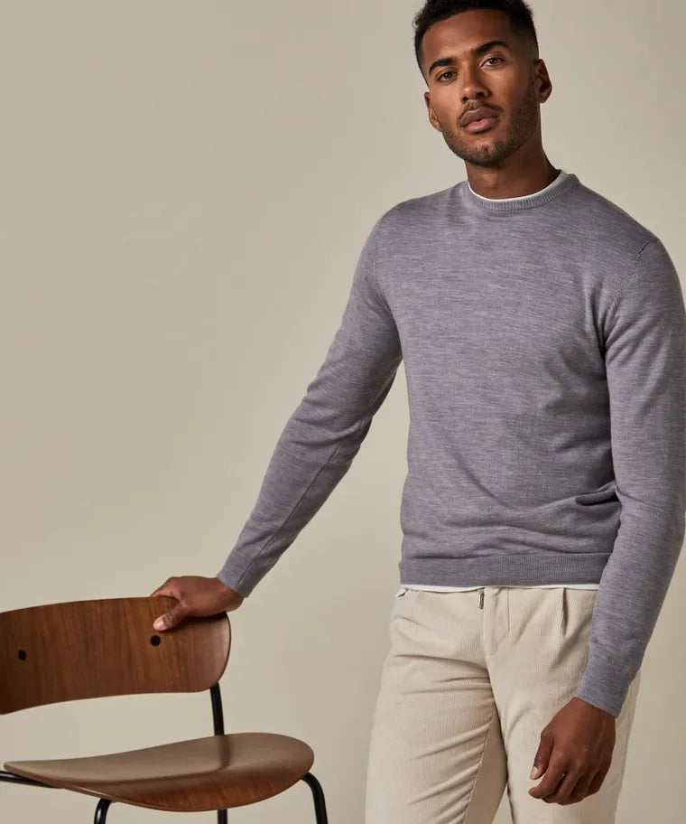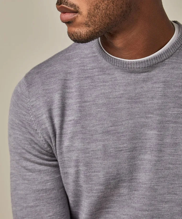 A StylishGuy Essential - Extremely lightweight jumper made from a very warm and comfortable extra-fine merino wool. This grey pullover knit from Profuomo is versatile and easy to slot beneath a blazer or on a shirt.