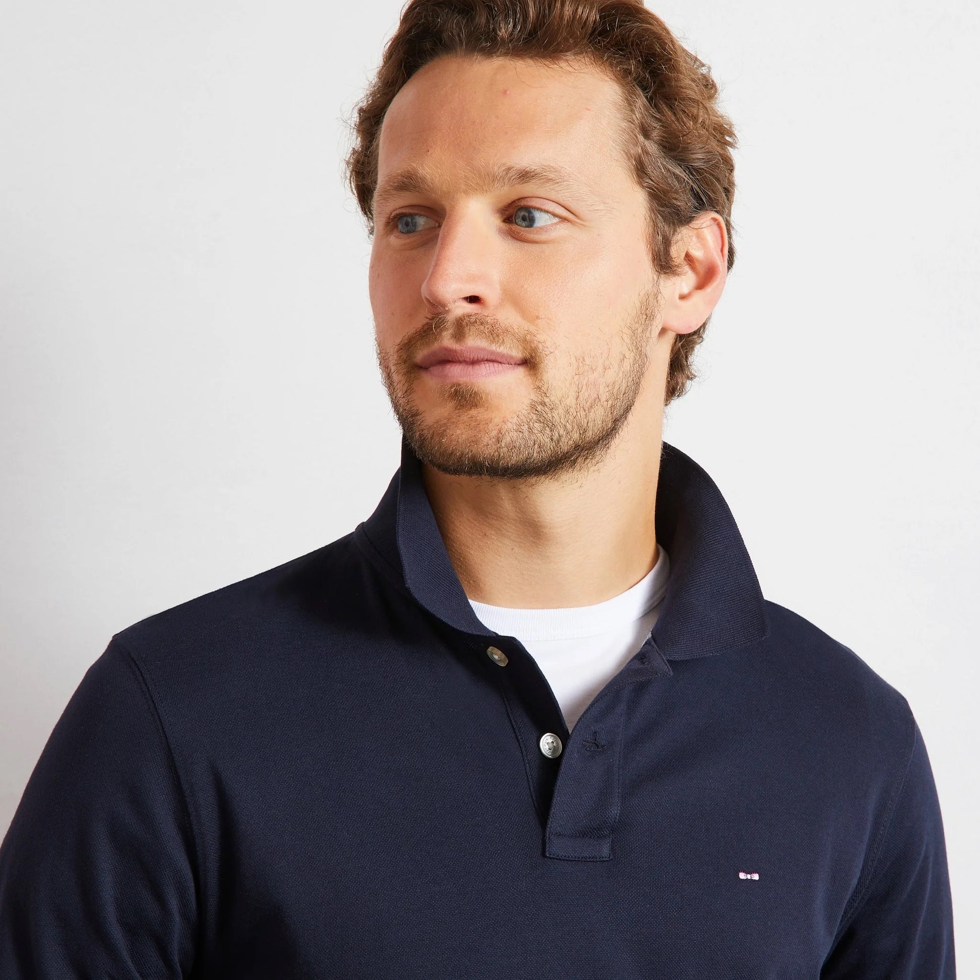 Timeless everyday comfort, this solid navy long sleeve polo shirt is made from soft and fresh pima cotton with a slight stretch. Classic and sporty design, it will quickly find its place in your essentials wardrobe.