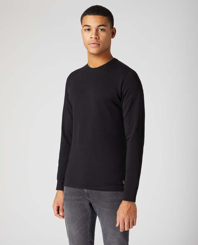 Black tapered fit cotton-blend long-sleeve tee shirt.