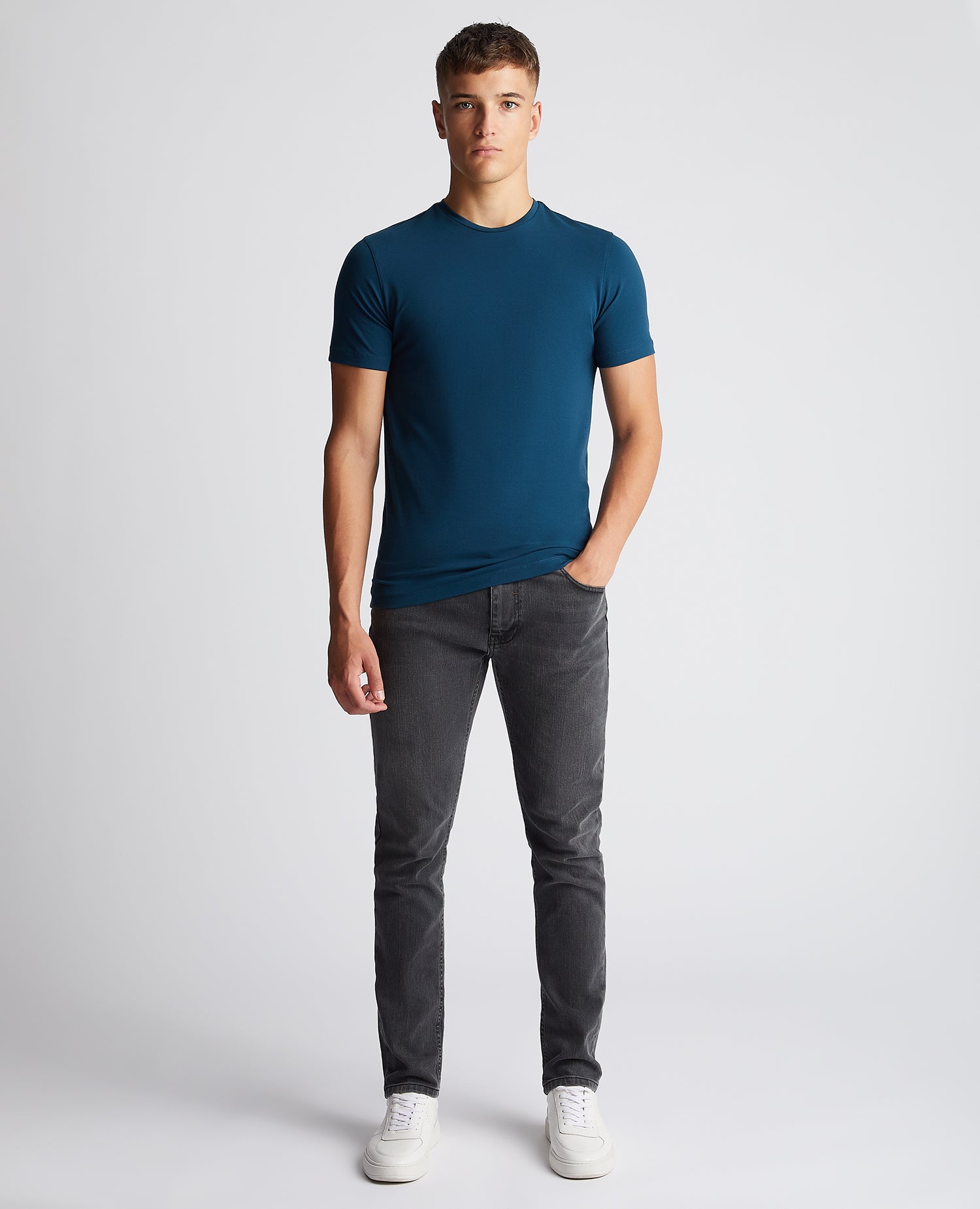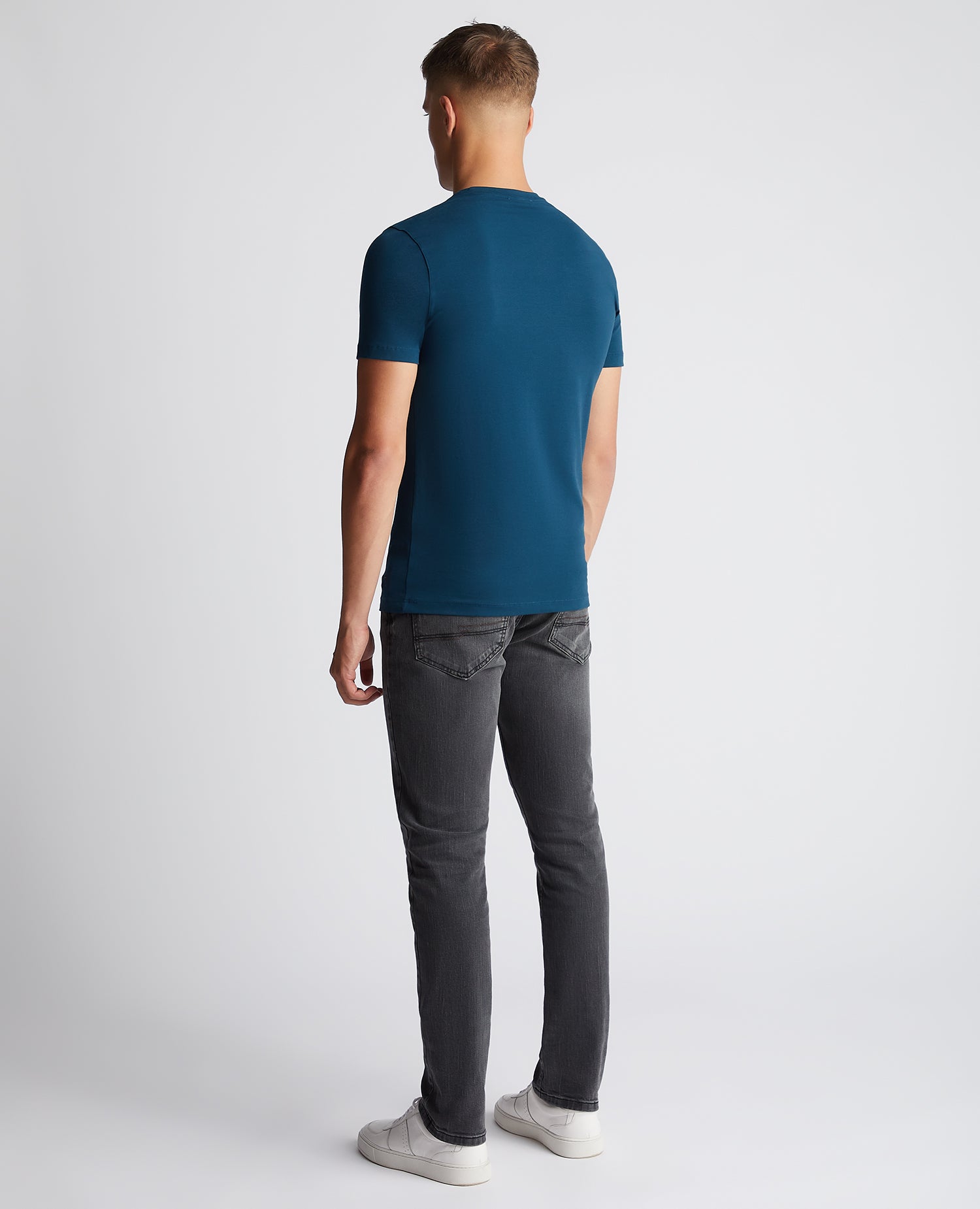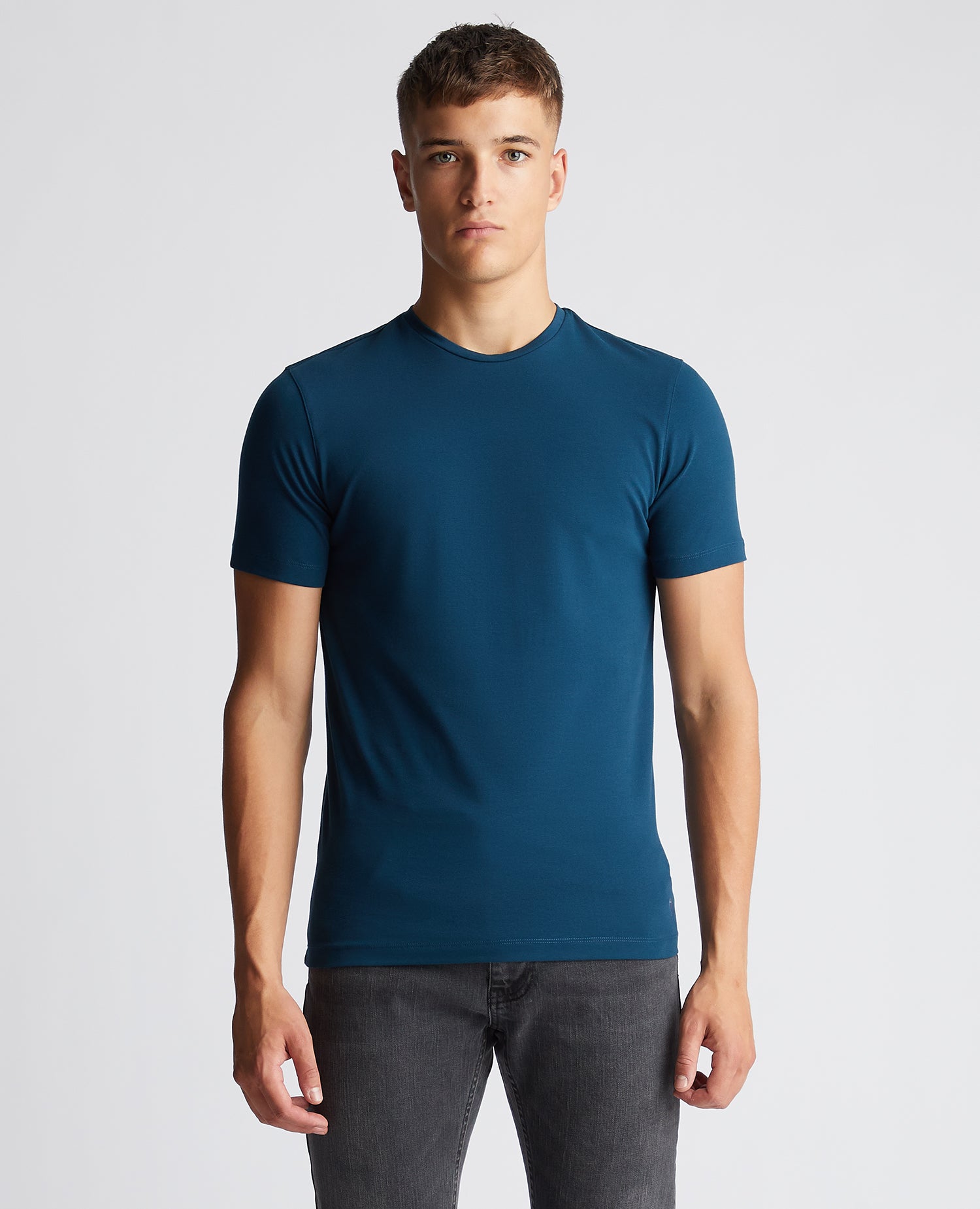 Blue tapered-fit short-sleeve t-shirt by Remus Uomo. Comfortable with a slight stretch and classic round crew neckline.