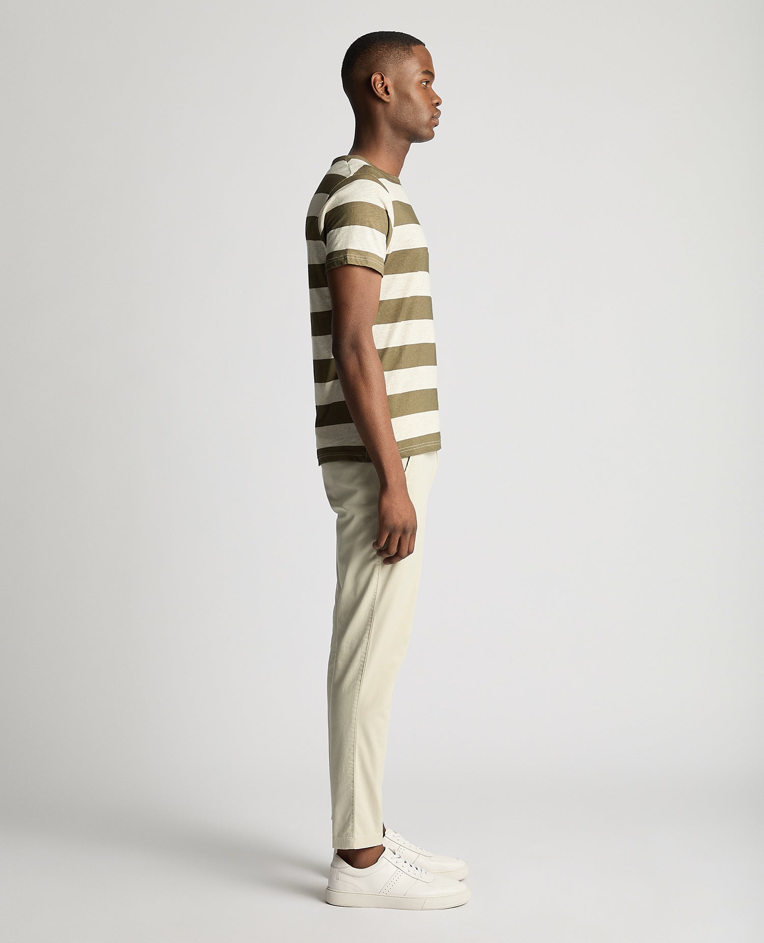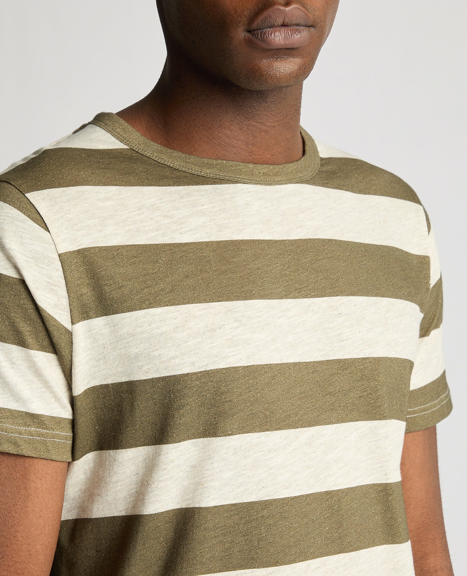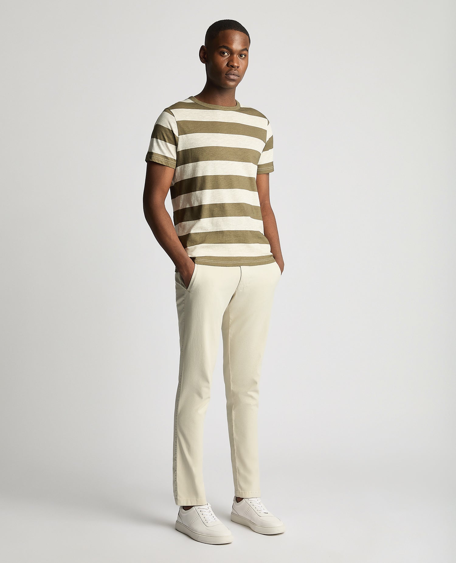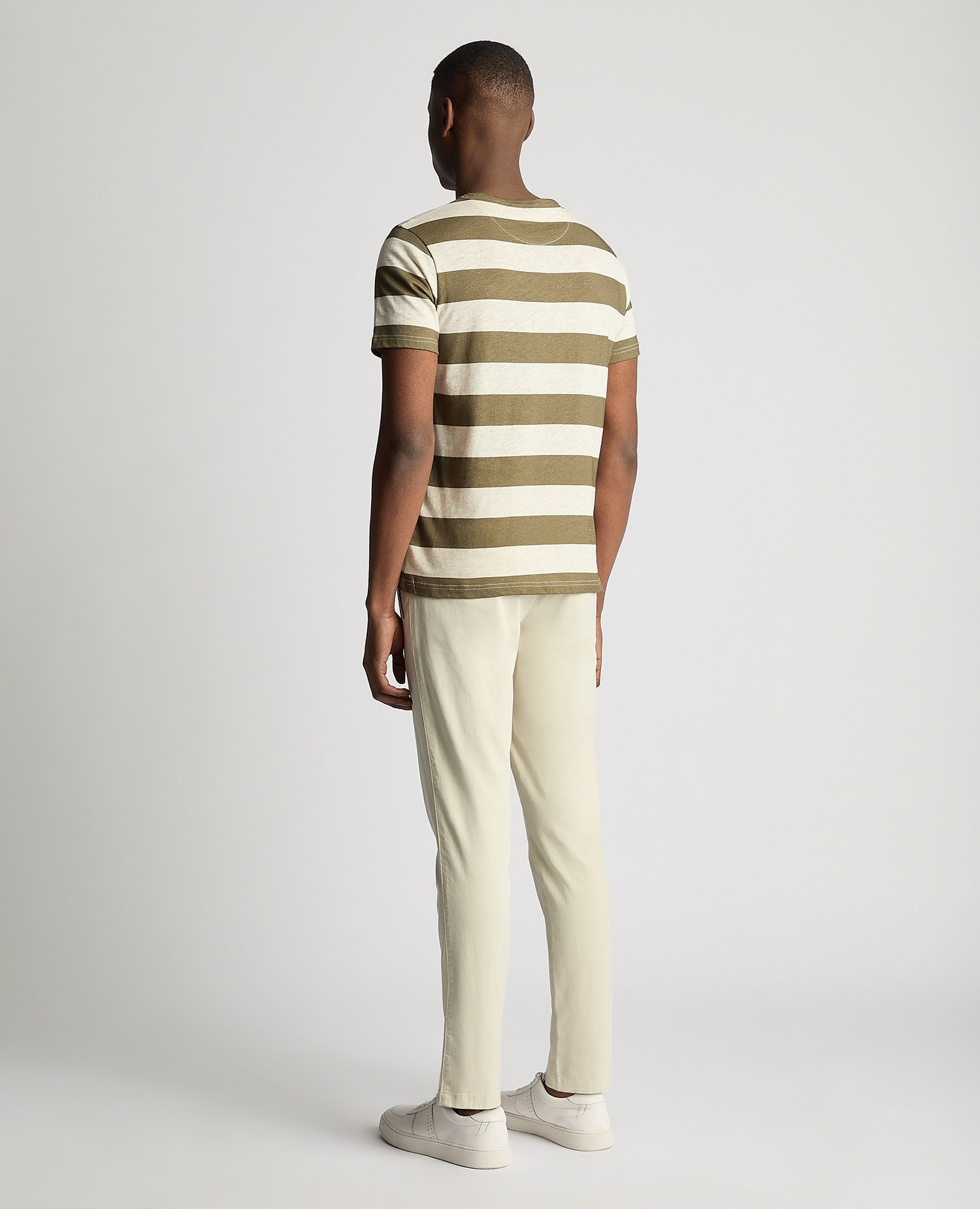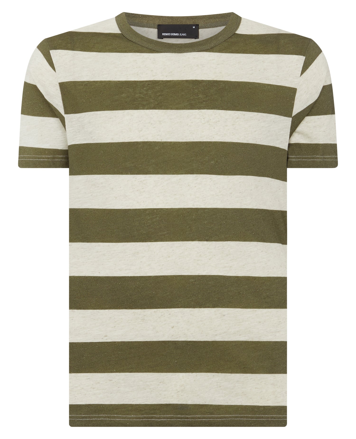 Remus Uomo Relaxed Fit Khaki Striped Cotton T-Shirt